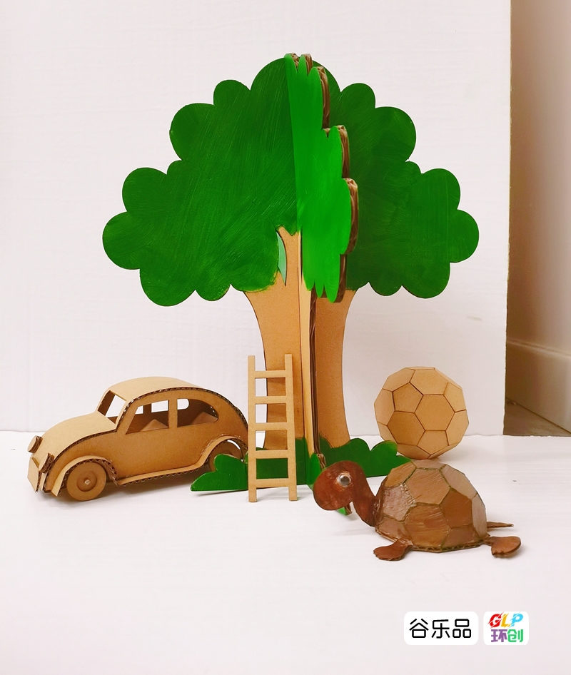 手工纸板小车草坪树乌龟梯子