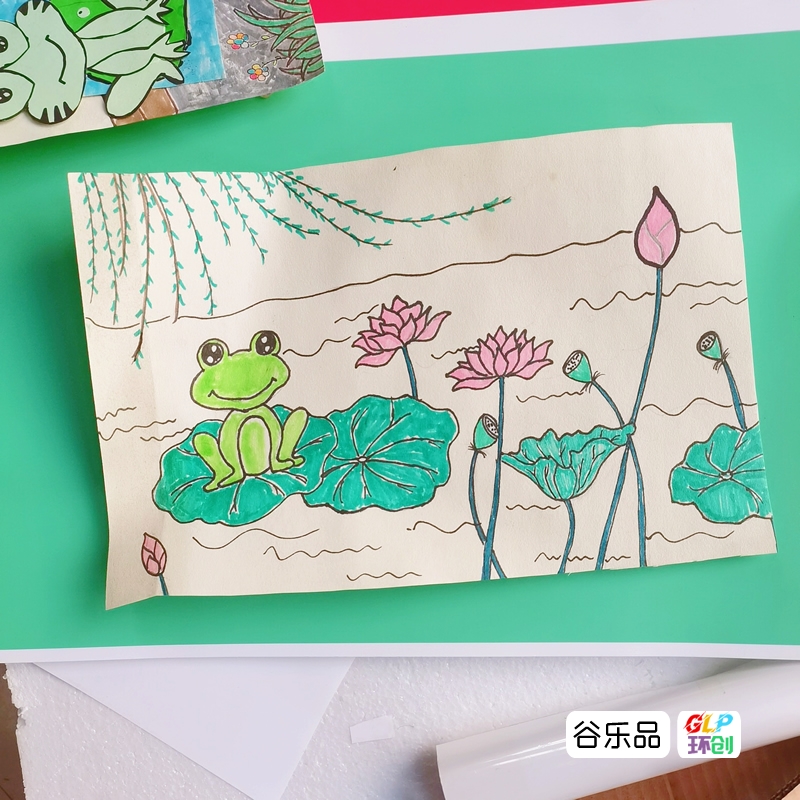 简单的绘画了一张画画青蛙荷塘月色