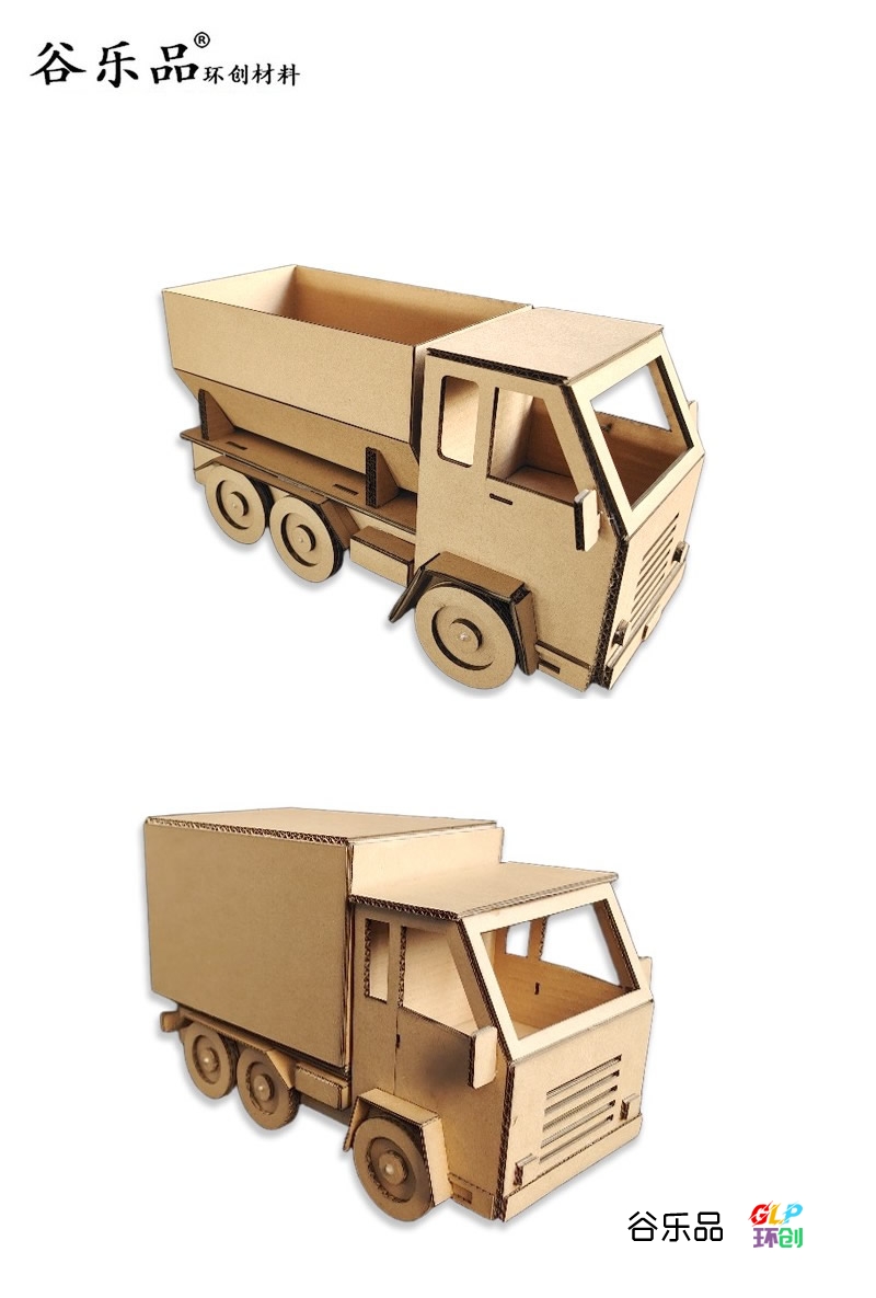 谷乐品环创手工材料DIY定制新立体垃圾工程车纸板箱式货车定制